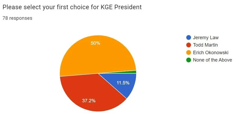 Below you will find the results for the 2023 KGE Directors Election. We had about an 85% voter response, which is quite excellent for our club. We would like to welcome to their seats: